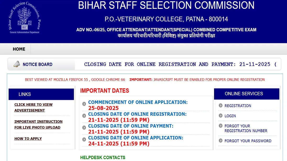 BSSC ऑफिस अटेंडेंट भर्ती: 10वीं पास के लिए सरकारी नौकरी का शानदार मौका, 3727 पदों पर तुरंत करें आवेदन